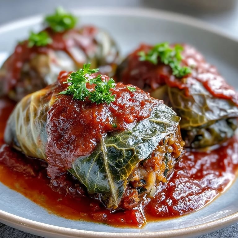 Save My friend Sarah showed up at my door one winter evening with a container of cabbage rolls her grandmother had made, and I watched her face light up as she described the earthy lentils and tender leaves tucked into that rich tomato sauce. Years later, when I went vegan, I realized I could recreate that same comfort without missing a thing—just swap the meat for hearty legumes and herbs. The first time I rolled these, my fingers fumbled with the leaves like I was wrapping presents for the first time, but by the third one, muscle memory kicked in and the whole process felt meditative. Now this dish has become my winter anchor, the kind of meal that fills your kitchen with warmth and makes everyone at the table feel cared for.