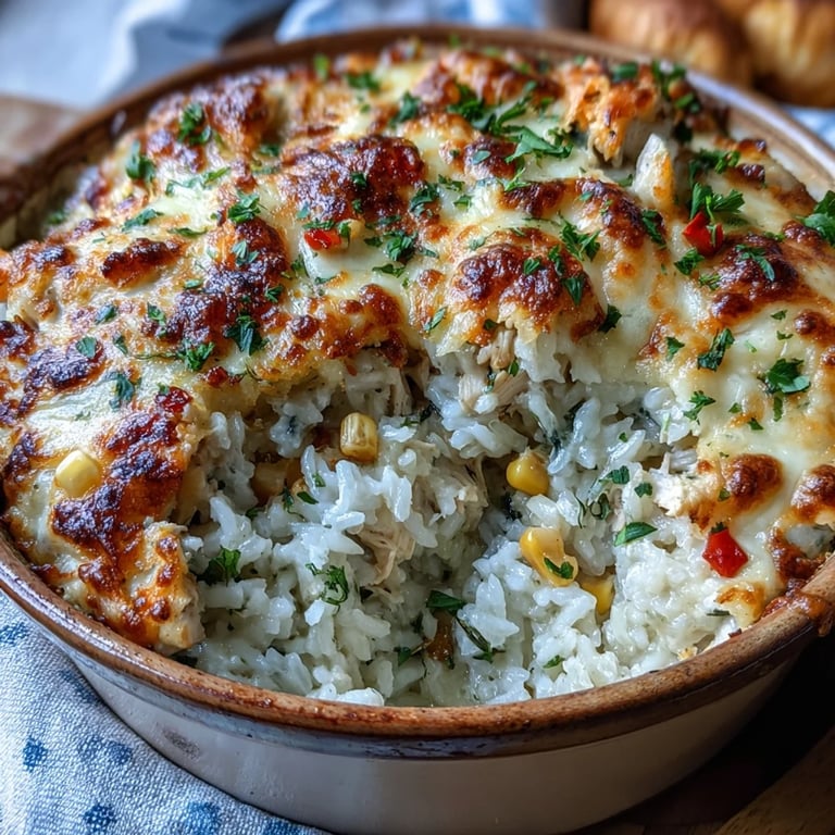 Save My cousin texted me one Tuesday asking for something that could feed her family of six without requiring three pots and a prayer. That question led me to this creamy garlic chicken and rice casserole, and honestly, it became the dish I reach for when I need comfort without the chaos. There's something about dumping everything into one pan and letting the oven do the heavy lifting that feels like a small victory. The first time I made it, my kitchen smelled like a fancy Italian restaurant by the time it came out golden and bubbling. Now it's the casserole people actually request by name.