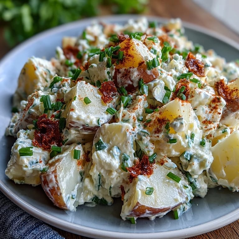 Save The last time I whipped up this deviled egg potato salad, the tangy aroma of mustard and sweet relish mingled in the air as my kitchen windows fogged from boiling potatoes. There's something about that first moment when you slice into a tender potato—you realize it's about to become more than just a side dish. My neighbor dropped by unexpectedly, lured by the unmistakable scent, and we ended up taste-testing the dressing right at the counter. This wasn't just another potato salad—it was an excuse to pause and share a spoonful, debating the merits of smoked paprika with a grin.