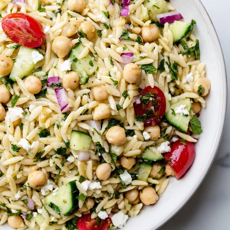Save I threw this salad together on a Tuesday afternoon when the grocery bag tipped over and orzo spilled across the counter. Instead of putting it back, I just cooked the whole box. The kitchen smelled like lemon and mint within twenty minutes, and I stood at the counter eating straight from the bowl. It became my go-to whenever I need something that tastes like effort but requires almost none.