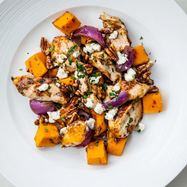 The first time I made this salad, the comforting aroma of roasted squash and chicken filled the kitchen. It quickly became a weeknight favorite because of its color, ease, and heartiness.
