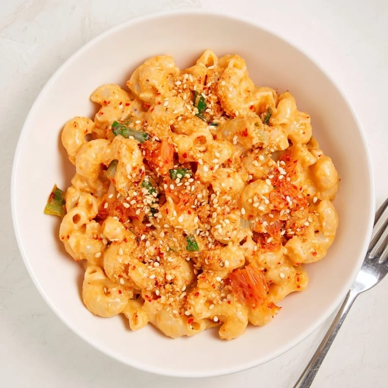Use well-fermented kimchi for deeper flavor and more pronounced tang in the macaroni blend.