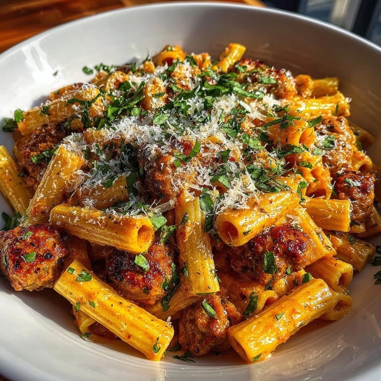 Save This creamy vodka penne with sausage is pure comfort food for busy nights and dinner parties alike. Spicy Italian sausage and a rich tomato vodka sauce cling to every tube of pasta, making each bite special and deeply satisfying. Every time I make this, it feels like a restaurant meal I can pull off at home without fuss.