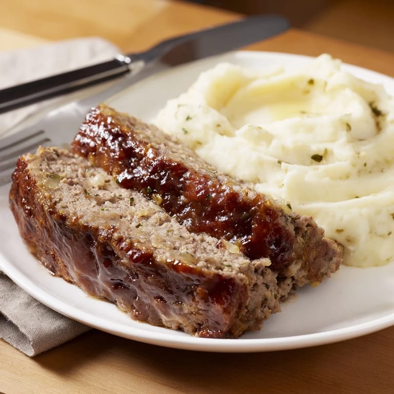 Save This classic American dish combines simple pantry staples with expert seasoning to create a meal that feels like a warm hug. The meatloaf glaze enhances every bite with a touch of sweetness and tang, while the mashed potatoes are whipped to creamy perfection, making this combo a beloved staple in many households.