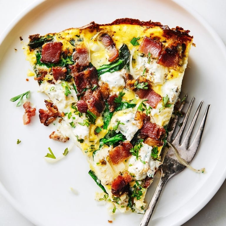 Swap spinach for asparagus spears or diced zucchini in summer Use sautéed mushrooms in the fall for earthy flavor Add sliced tomatoes to the top before baking in late summer Helpful Notes Use room temperature eggs and dairy for best blending Dry any fresh herbs thoroughly so the frittata is not watery Letting the pan cool slightly before cutting makes for neat slices