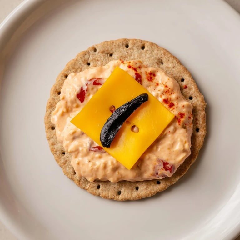 These savory cheese crackers are a festive treat, baked to melt sharp cheddar on whole wheat bases. Each is topped with a smooth roasted red pepper dip combined with cream cheese and spices, then adorned with olive strips and bell pepper squares to mimic Santa’s belt. Perfect for holiday entertaining, the crackers balance creamy, smoky, and savory flavors with easy assembly and quick baking. Variations include gluten-free options and added heat with cayenne. A delightful appetizer or snack for winter celebrations.